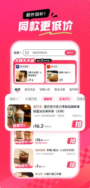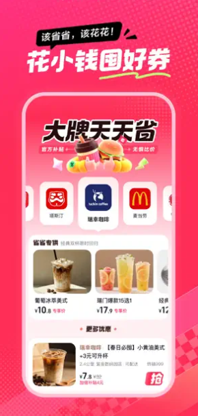 新用户首周每天可领取最高 12 元优惠券,覆盖餐饮、饮品等多个品类,瑞幸、麦当劳等大牌首单低至 0.01 元,春节吃喝玩乐也能轻松享。
