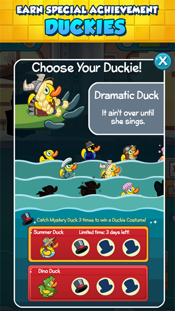 3. 游戏里会遇到不少让人头疼的难关。不过不用担心。有各种各样的辅助道具帮你渡过难关。除此之外。还有角斗鸭。宇航鸭。草裙鸭这些超可爱的鸭子皮肤等你来收集。