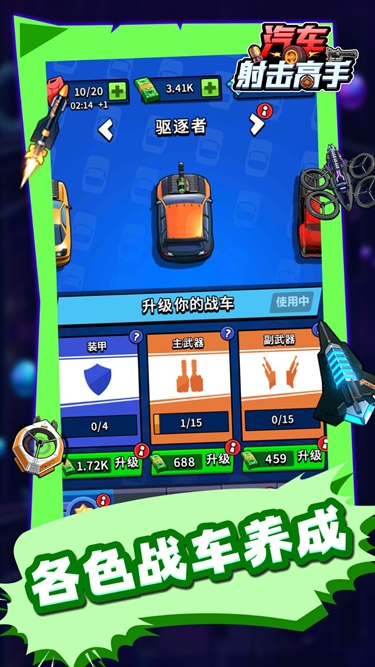 1、 游戏里有个超棒的火力提升机制,只要你连续成功击杀敌人,车辆就会自动提升火力等级,攻击力越来越强,作战能力直线上升,越打越上瘾;