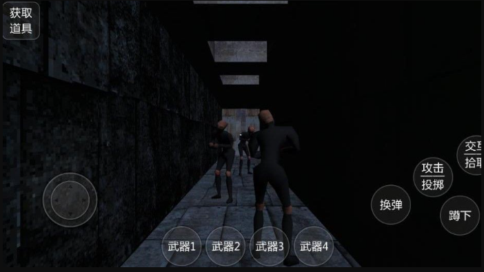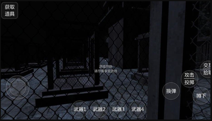 1. 开局即置身暗黑场景,屏幕配备攻击、投掷按钮,可用于对抗敌人或投掷物品;交互键可拾取道具,而蹲下、跳跃等基础操作是躲避攻击、穿越复杂地形的生存关键;