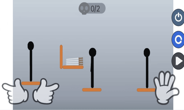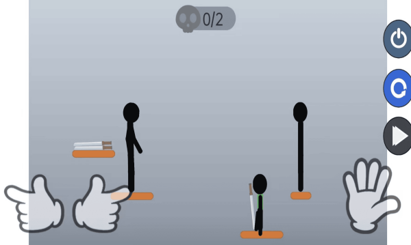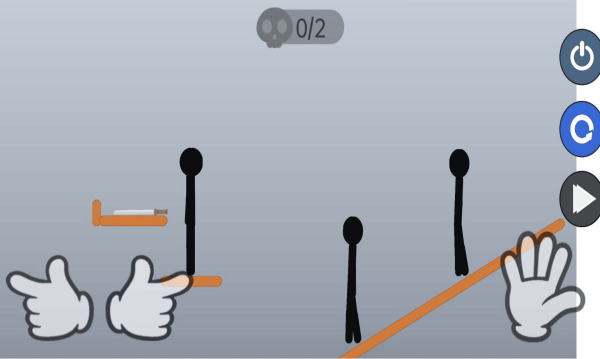 3. 关卡操作技巧:进入关卡后,点击画面左侧按钮控制火柴人手臂,点击右侧按钮控制手掌握住武器;