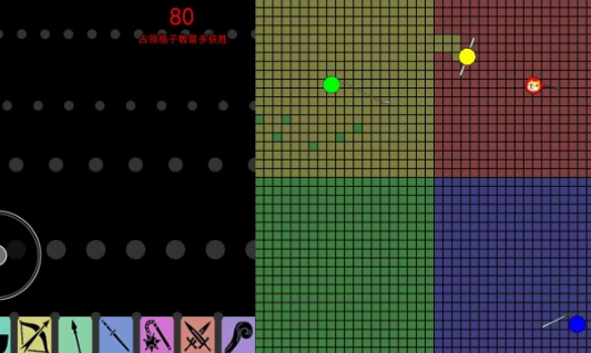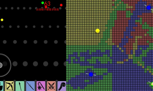 1. 基础操作简单易上手:通过点击或滑动操作,在网格地图上放置并扩张代表自己颜色的方块,逐步占领更多领土;