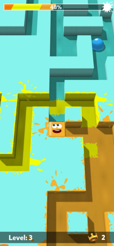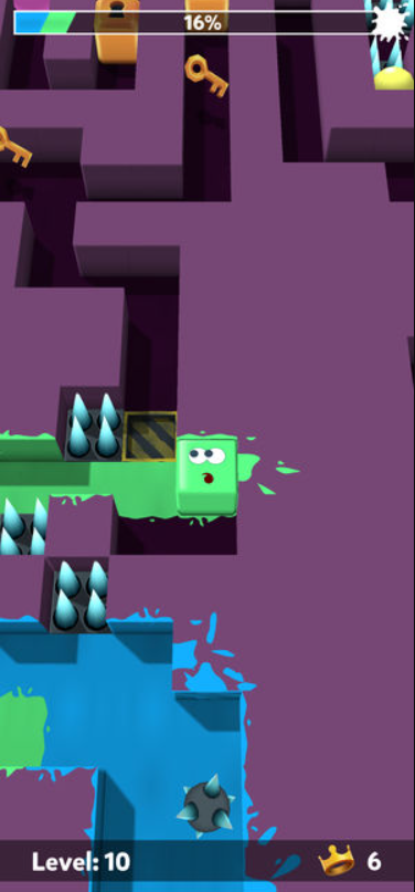 2. 核心目标:控制方块在迷宫中穿梭,通过滑行留下彩色路径占领领地,同时寻找钥匙解锁后续关卡,运用智慧突破各种障碍挑战;