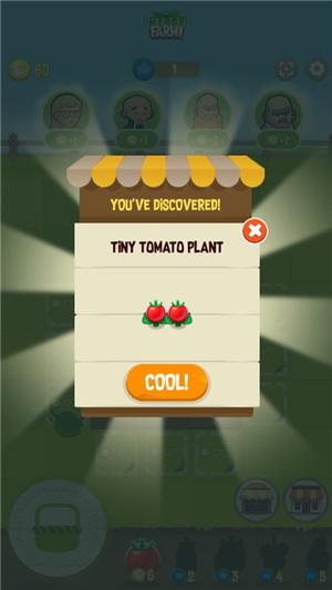 进入农场界面后,先找到两株相同等级的番茄,将它们拖动至同一位置完成合并,即可生成更高阶的作物;合并成功后获得的金币,可用于后续解锁新地块与功能区域。