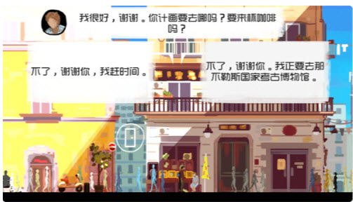 5、 到达左边最底部后,点击进入场景,再往左走,就能进入博物馆;进入博物馆后,与里面的女生NPC对话,对话结束后会获得一张门票,这样就成功解锁博物馆了;