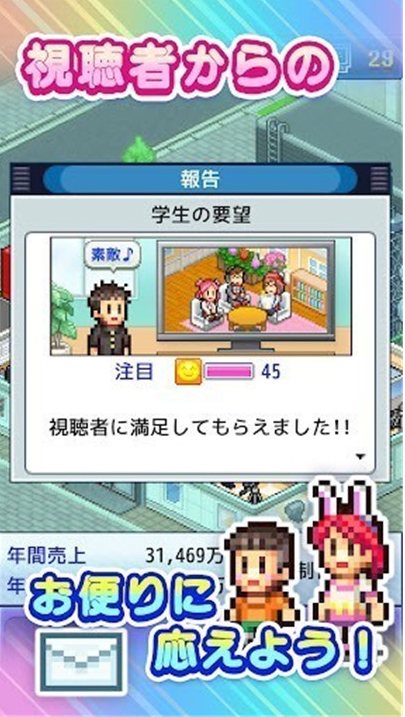 1. 经典日式像素画面,角色场景精美,高度还原电视台经营场景,代入感强。